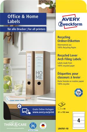 Iratrendező etikett, univerzális, 61x192 mm, újrahasznosított, AVERY ZWECKFORM, 40 etikett/csomag