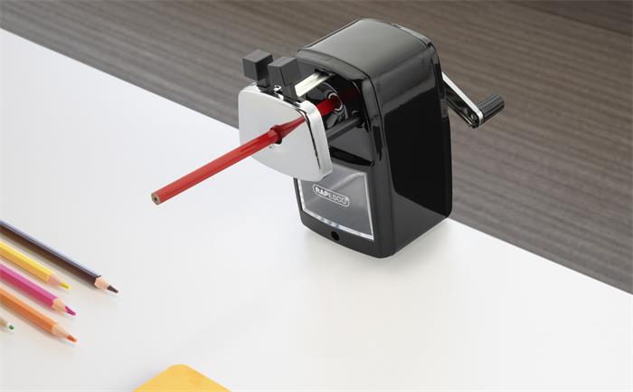 A Rapesco 74 asztali ceruzahegyezője stílusos, rendkívül funkcionális hegyező, amely számos funkcióval rendelkezik